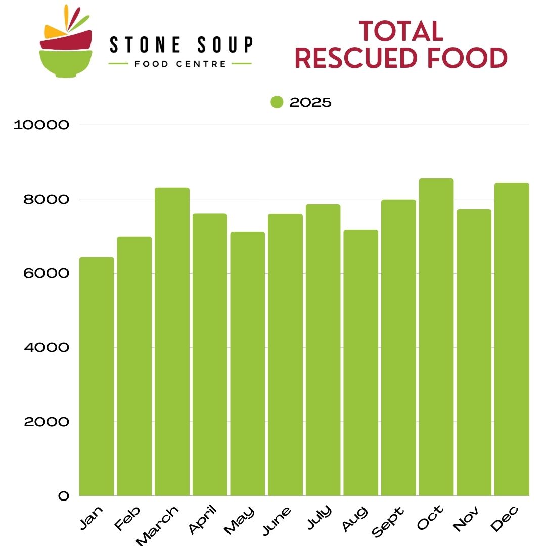 The Stone Soup Food Centre has been a project to collect "rescued" food from grocery stores, restaurants, and individuals. This food is then distributed to people. Any food that is not fit for human consumption is used as animal feed or compost.